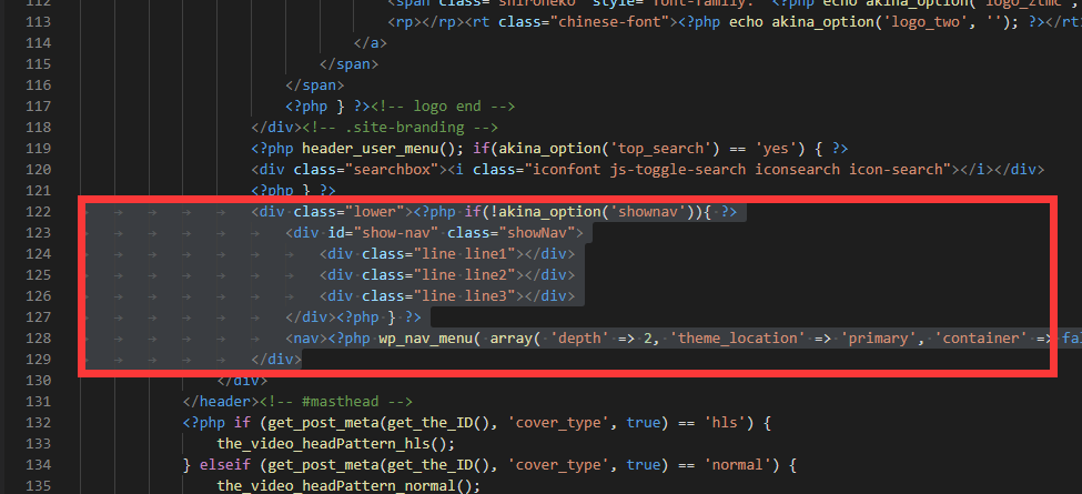 <div class="lower-cantiner"> <div class="lower"><?php if(!akina_option('shownav')){ ?> <div id="show-nav" class="showNav mobile-fit"> <div class="line line1"></div> <div class="line line2"></div> <div class="line line3"></div> </div><?php } ?> <nav class="mobile-fit-control hide"><?php wp_nav_menu( array( 'depth' => 2, 'theme_location' => 'primary', 'container' => false ) ); ?></nav><!-- #site-navigation --> </div> </div>