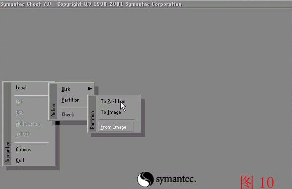 - 回车后 就会进入GHOST 的操作界面 见 图10