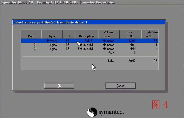 选择分区(可以用方向键上下选择 用TAB选择项目 )通常选择第一个就是C盘 分区选定分区回车确定按一下TAB 再次确定 回车 就表示已经选定为 备份C盘如果说您不能确定是不是备份的C盘